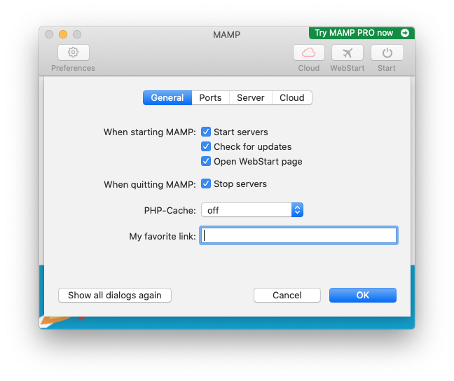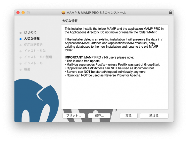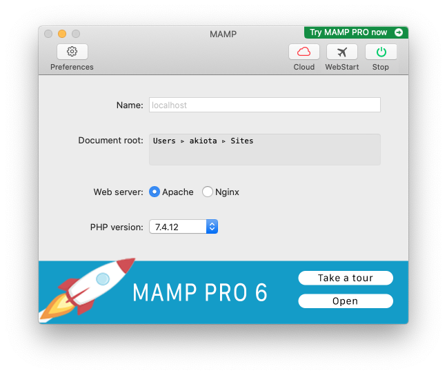 このままでもMAMPは動作しますが、セキュリティ上若干よろしくないので、次の「MAMPのセキュリティ対策」のページに従って対策をしてください。