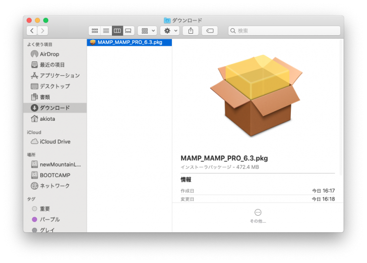 Downloadが終わったら、「MAMP_MAMP_PRO_○○○.pkg」を開きます。