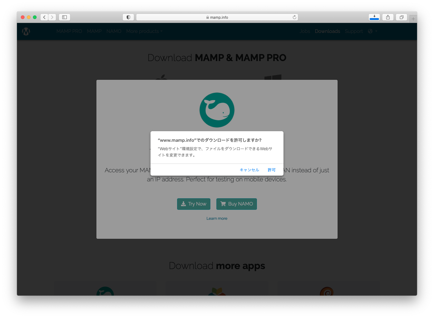 Safariで警告が出たら「許可」を押してください。
